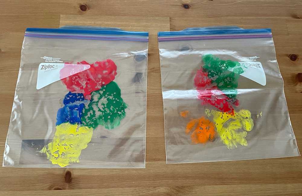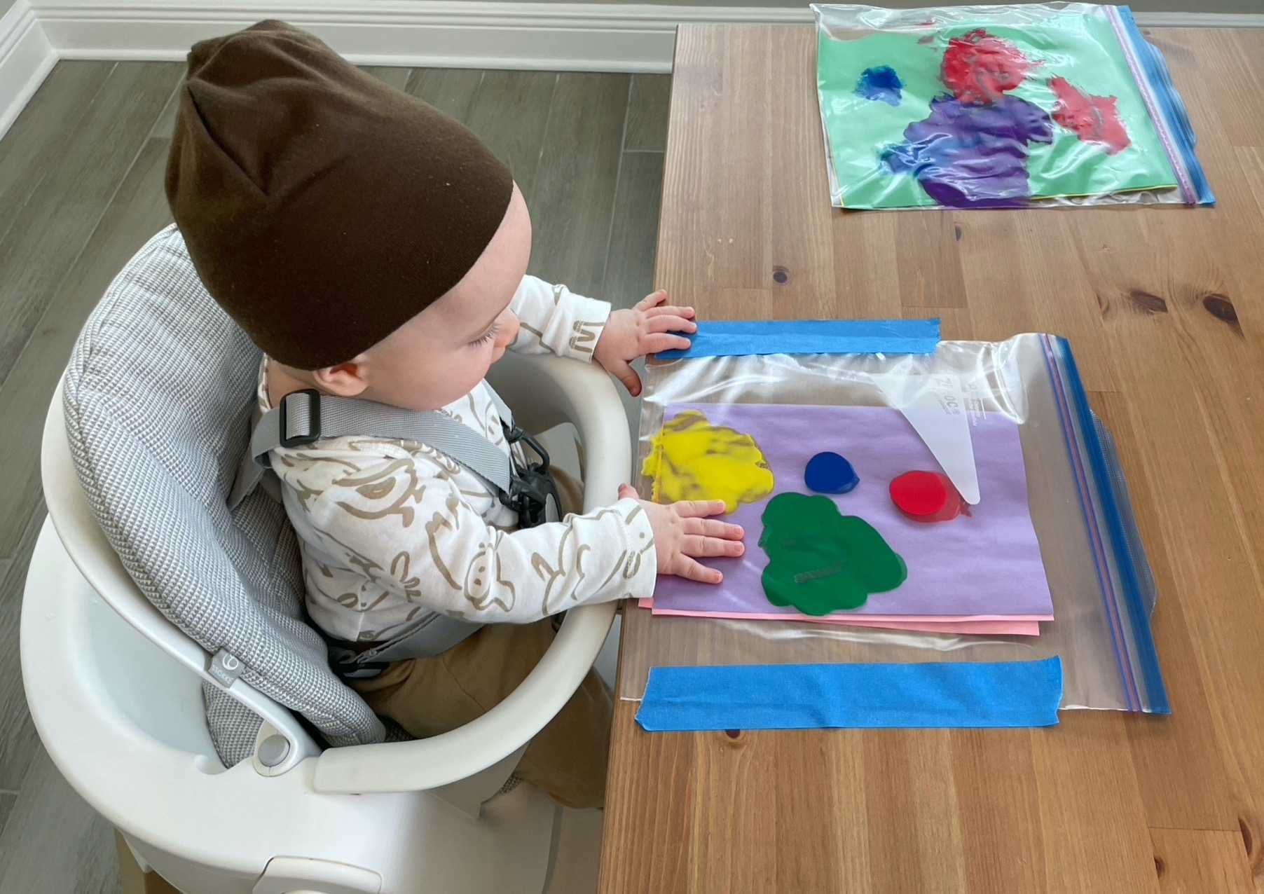 You can also put some paint into a Ziplock bag and have baby squish the paint that’s in the bag. It’s another sensorial experience!