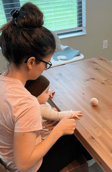 It’s not too early to start playing catch -- well a modified version, at least, for baby. I got this idea from Dr. Peter Vishton’s online course, Scientific Secrets for Raising Kids Who Thrive, and it’s a good one.